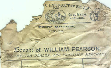receipt from the post office Carlton in the 1880's - the sub-postmaster is