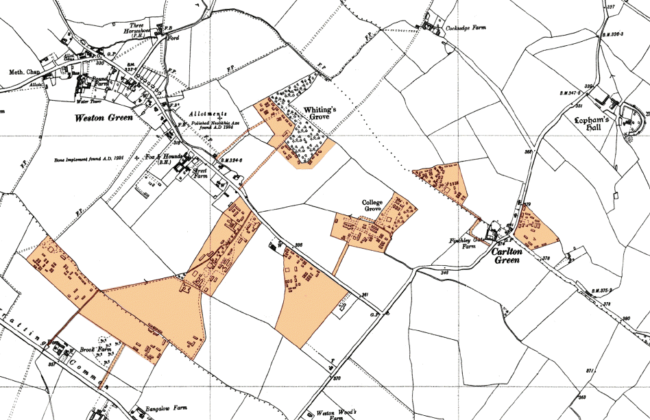 itself was mostly in the neighbouring parish of Weston Colville (extending