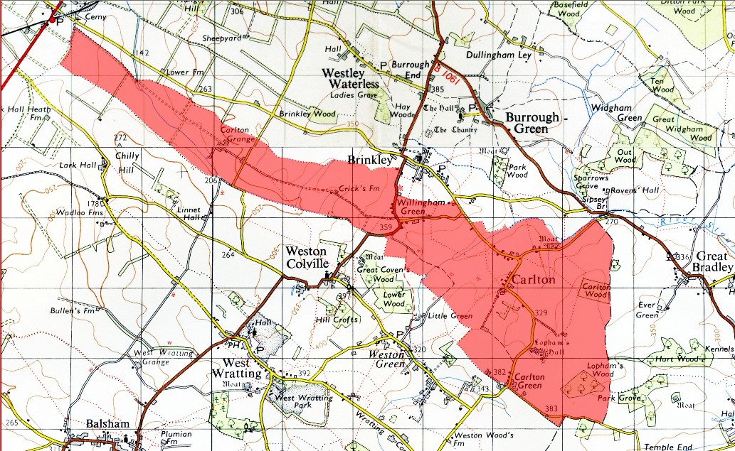 boundary extends all the way to Six-Mile-Bottom (encompassing Carlton Grange